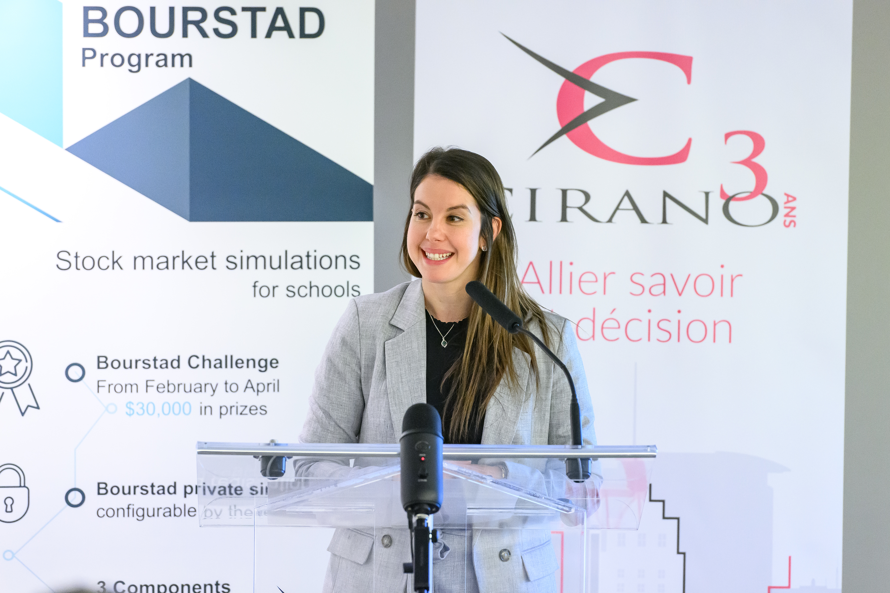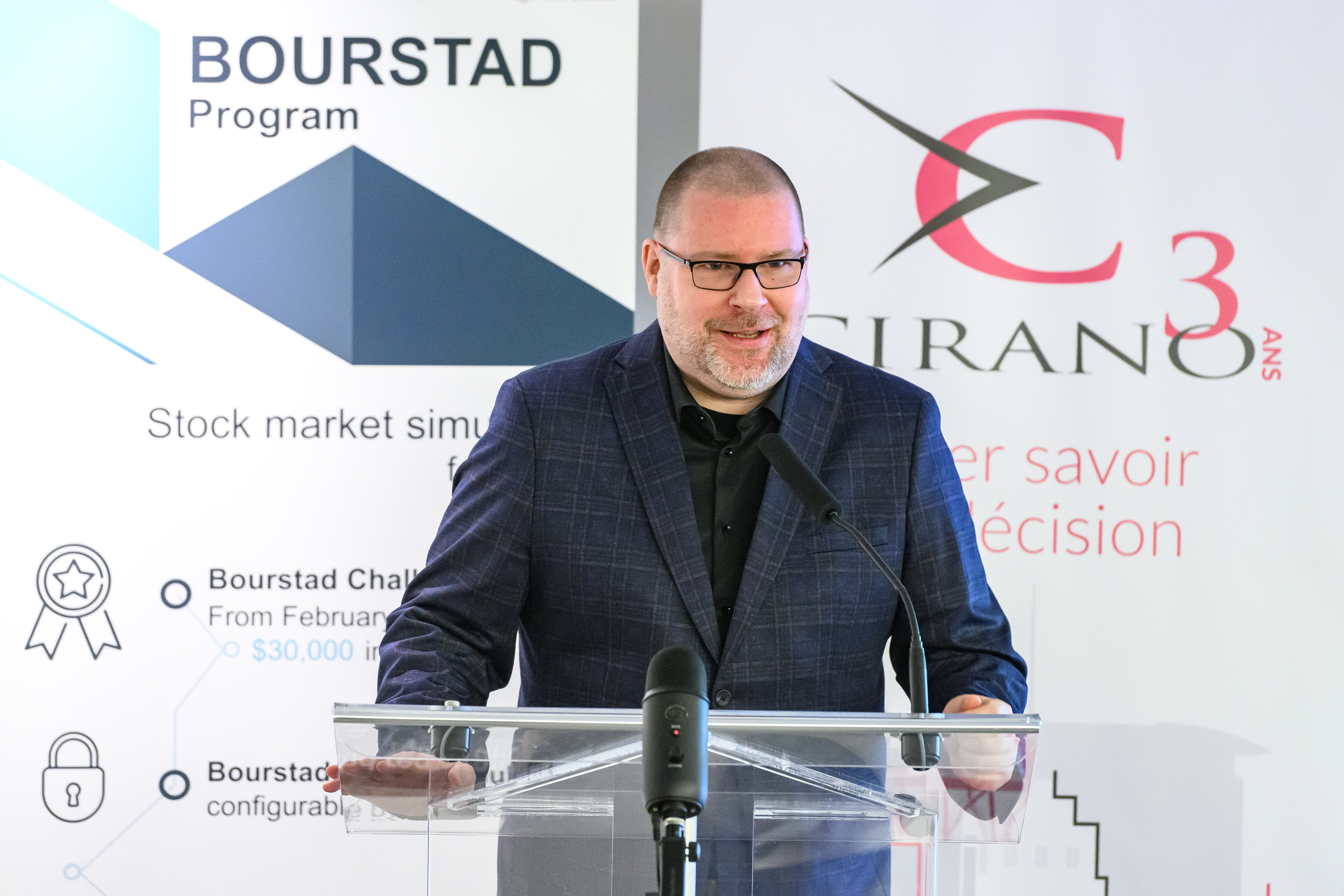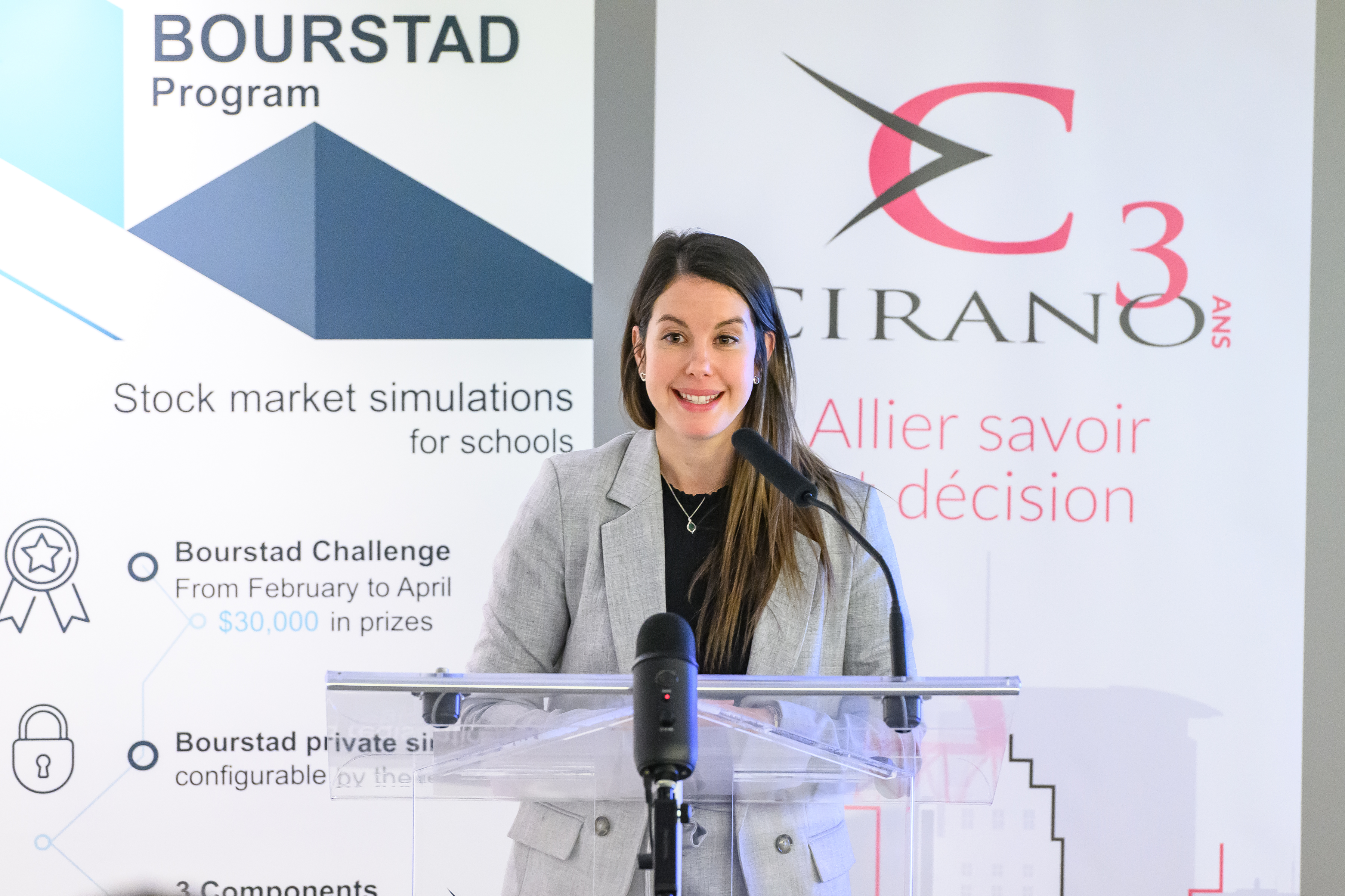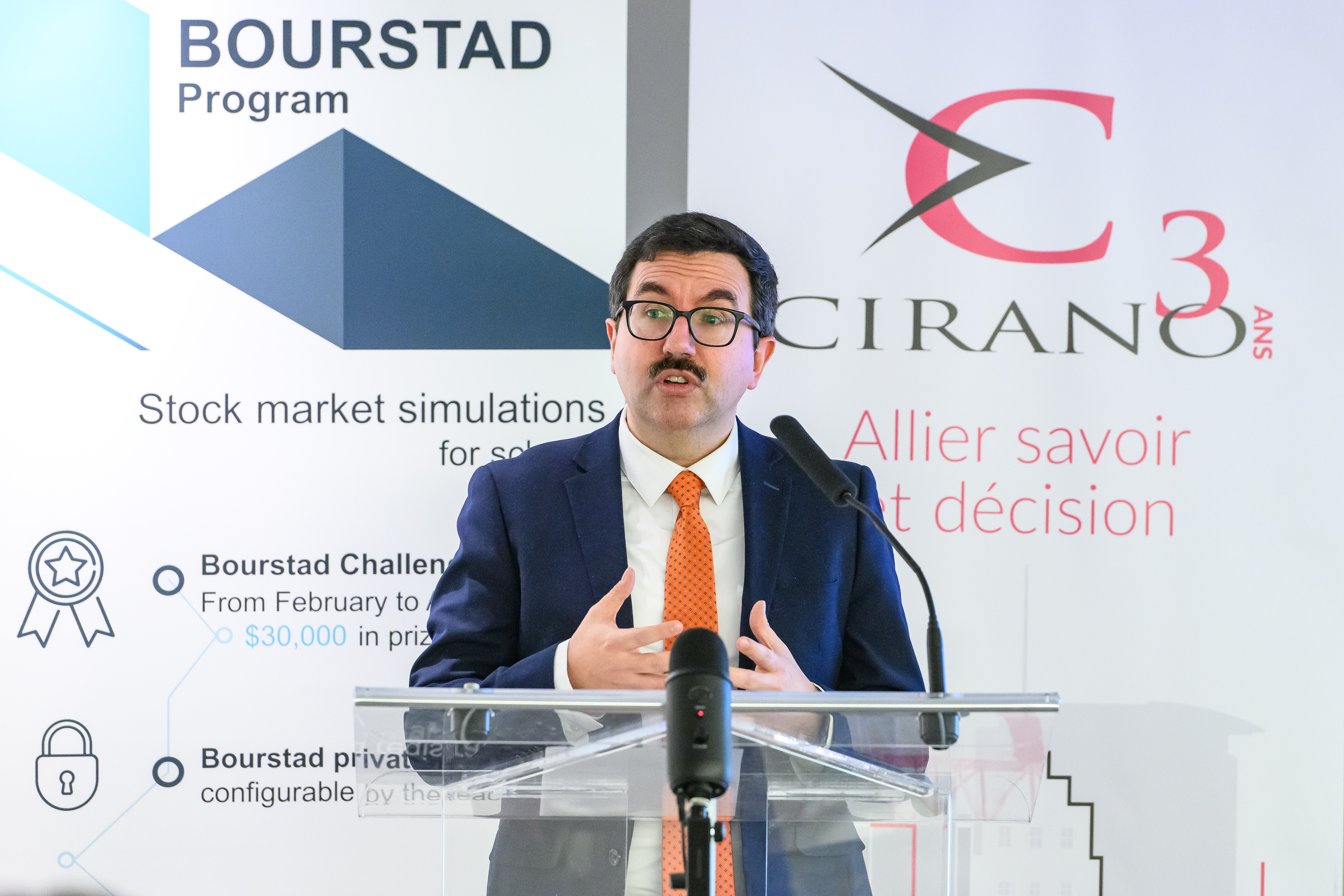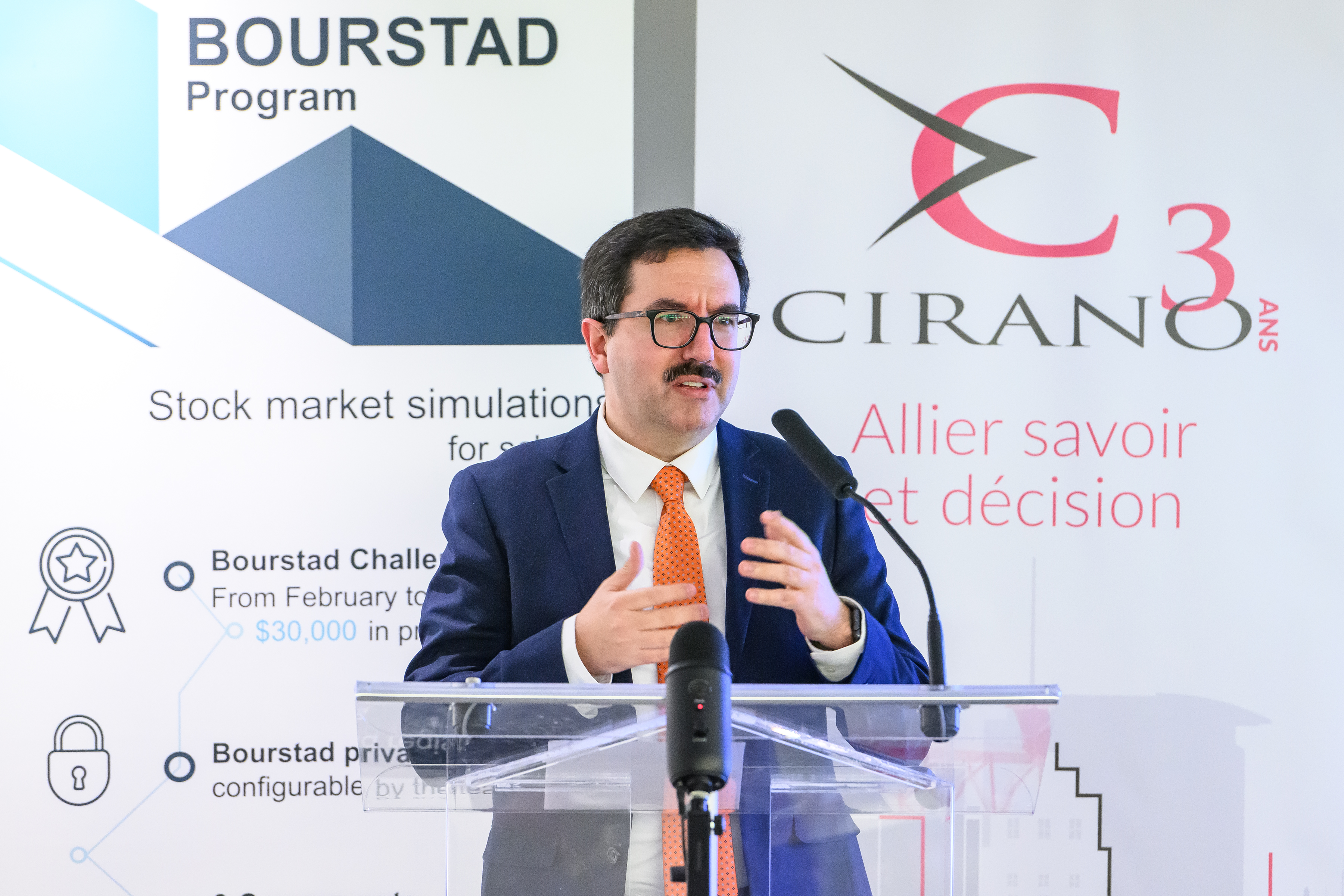 Le CIRANO et son partenaire principal pour cette activité, l’Autorité des marchés financiers (AMF), ont lancé officiellement les inscriptions au concours Bourstad 2024 le 16 janvier 2024, entre midi et 13 heures, événement auquel il était possible de participer en personne ou à distance.